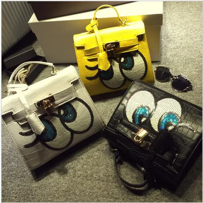 найти лучшие цены на Мода 2016 дизайнеры Милые Большие глаза блестки Девушки небольшая сумка женщины crossbody сумки посыльного bolsa feminina сумки на AliExpress.