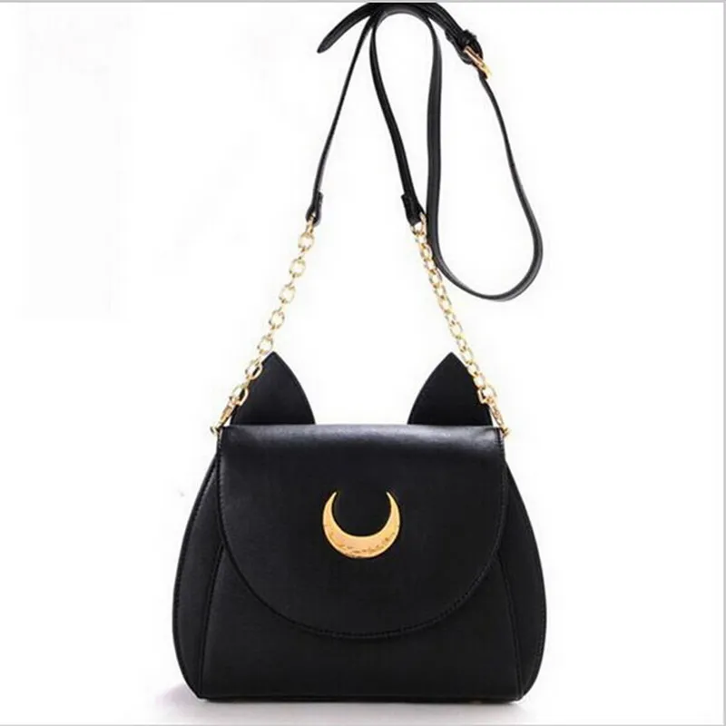 Скидка для Японский Harajuku Сейлор Мун Котенок Цепи Женщины Кожа Crossbody Сумка Сумка Креста Тела Сумки Луна Cat Форма ?